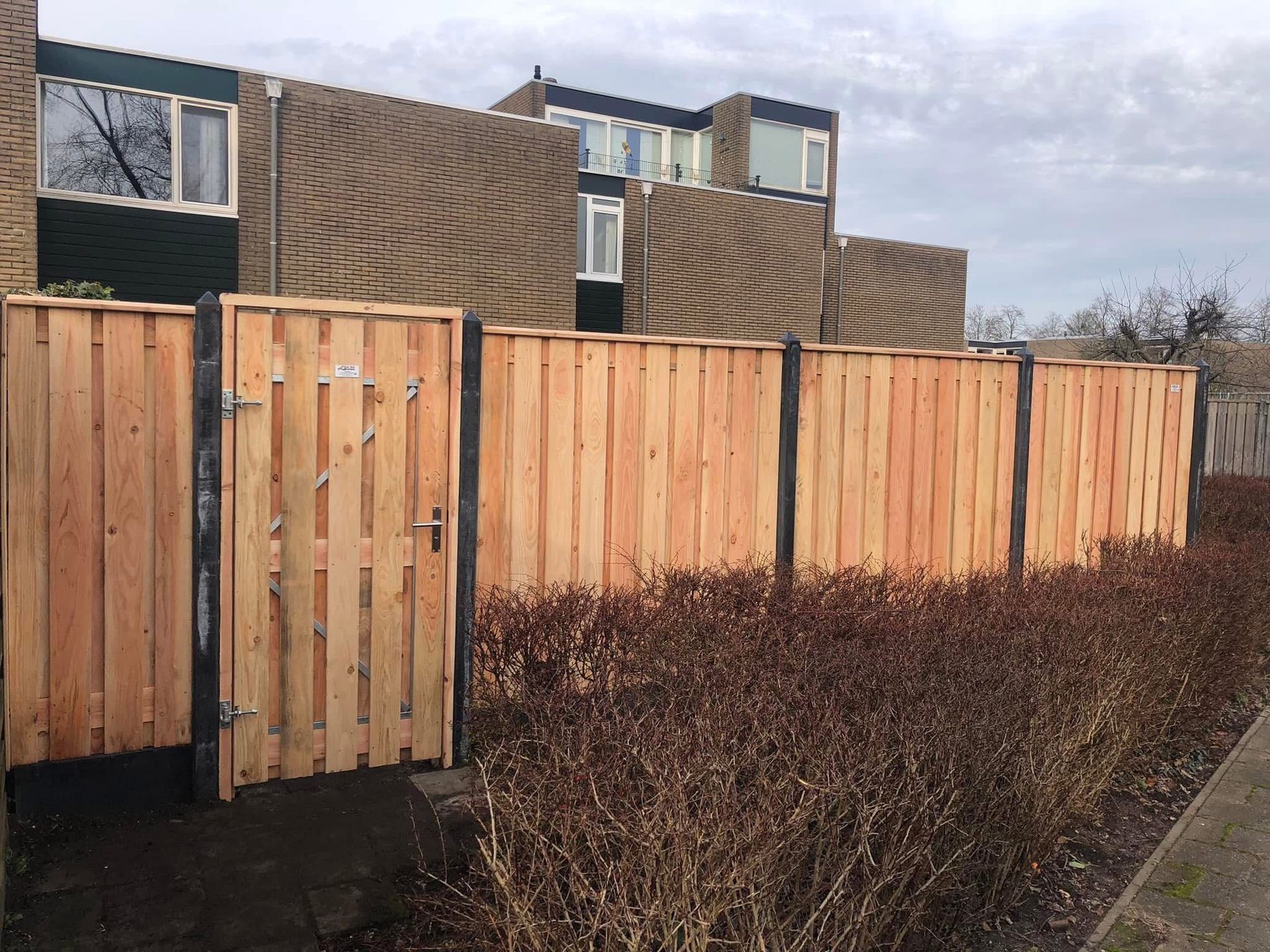 Dankzij de betonplaat onder de schutting en de twee betonpalen waar de schutting tussen geklemd zit, is er geen contact met de grond. Dit voorkomt dat uw houten schutting gaat rotten door zand/aarde/vocht. Daardoor gaat uw schutting veel langer mee.
